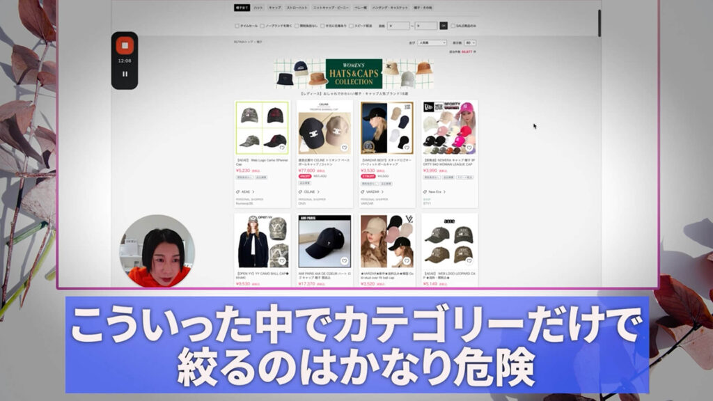 カテゴリー検索で上位に出てくる商品は、すでに資金力のあるプレミアムショッパーや、実績の豊富な強者が扱っている可能性が高いです。初心者が同じ商品を同じように出品しても、価格や実績で勝つことは難しいでしょう。